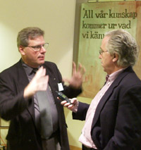 En av dessa var Stockholms stads nye utvecklingsdirektör Luis Abascal, som här syns lyssna i bakgrunden tillsammans med Pharmacias Eiler Remme.